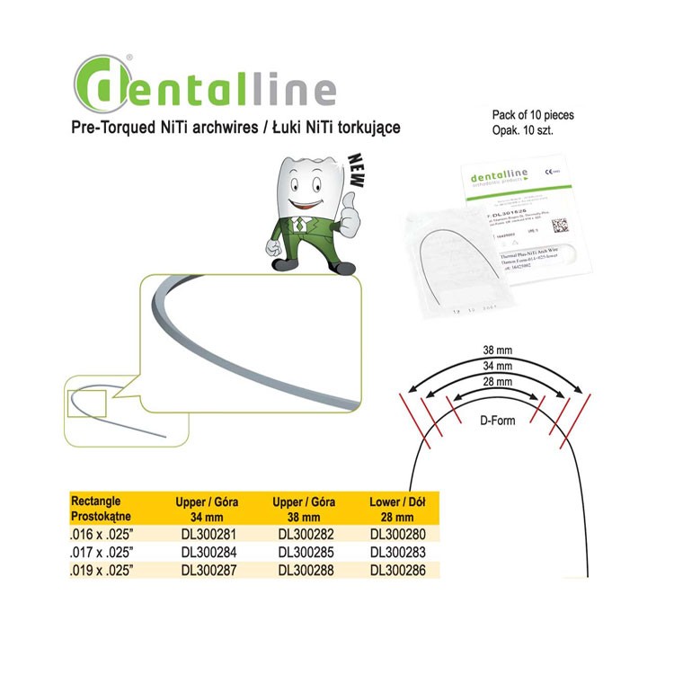 Dentalline NiTi l D-Form rectangle archwires with torque 34mm .016″ x .025″ (Pack of 10 pieces)400,00 zł brutto Availability: 5 in stock Dentalline NiTi l D-Form rectangle archwires with torque 34mm .016" x .025" (Pack of 10 pieces) quantity Add to basket SKU: DL300281 Categories: Nickel titanium D-Form archwires with torque, Orthodontics, Wires and Accessories