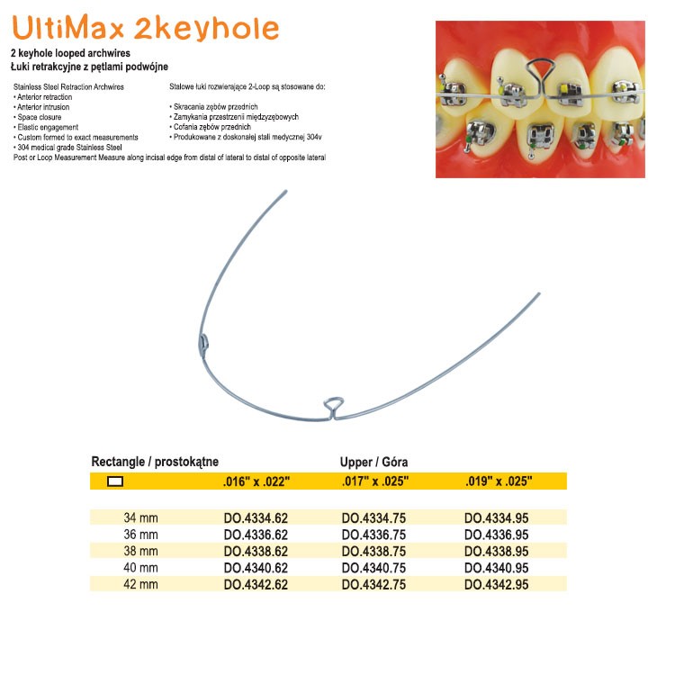 SS retraction archwire Keyhole 2 loop upper 36mm, .016″ x .022″ (Pack of 10 pieces)115,00 zł brutto Availability: 0 in stock SS retraction archwire Keyhole 2 loop upper 36mm, .016" x .022" (Pack of 10 pieces) quantity Add to basket SKU: DO.4336.62 Categories: Orthodontics, Stainless steel Keyhole 2 loop archwires, Wires and Accessories
